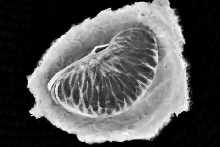 A detailed, high-contrast image presents a translucent starfish against a dark backdrop. The skeletal structure is clearly visible, revealing intricate internal features. The monochrome style creates a scientific aesthetic, suitable for educational materials and potential use in biological studies or research publications.