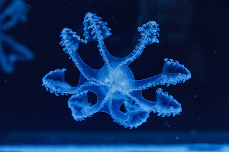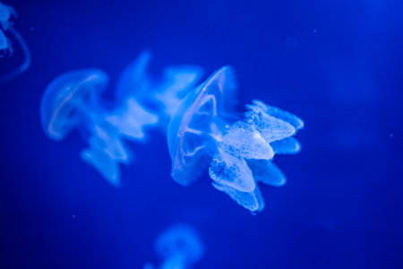 Jellyfish in an aquarium with blue water - Genoa, Italy