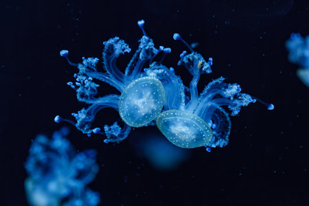 Beautiful jellyfish aesthetic intertwining jellyfish tentacles on a dark background