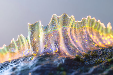 Close-up view of a beautiful sea creature showing vibrant colors and intricate textures at twilight.