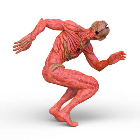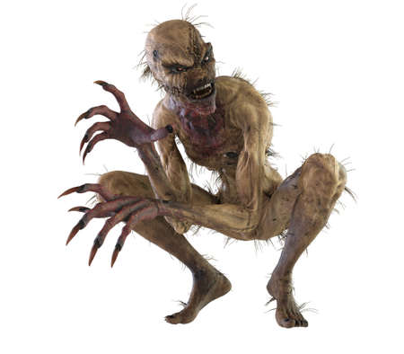 Boogeyman fantasy monster from childhood nightmares creeping while looking backwards. 3D illustration isolated on white background.