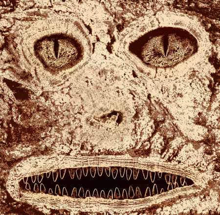 monster muzzle of wood bark close up