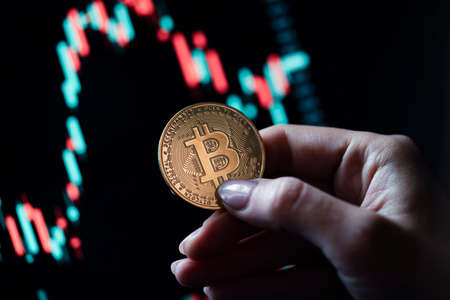 Bitcoin Cryptocurrency. Bitcoin coin growth chart on the exchange, chart