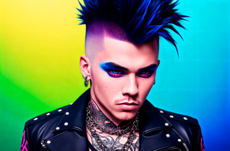 young punk man. Portrait of bold male with bright image, daring style. Generative AI
