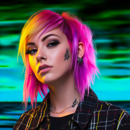 informal girl. Portrait of young beautiful woman with non-standard image, style. Generative AI