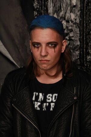 Dramatic punk rock portrait with vibrant hair and makeup
