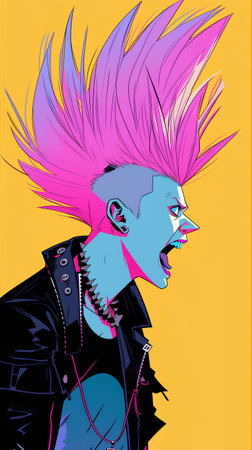 Vector illustration of a punk man with bright hair in pop art style.