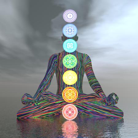Chakras cloudy meditation - 3D render
