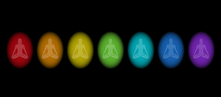 Different aura colors of a meditating woman in yoga position Isolated vector illustration on black background