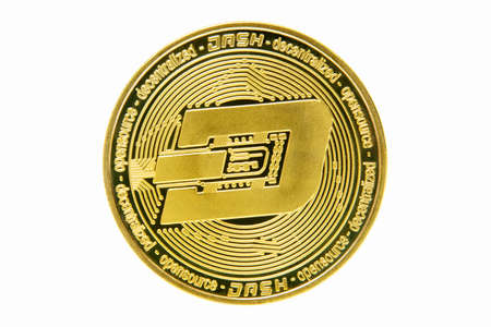 Isolated with clipping path, the golden DASH Coin symbol close up. DASH coin is one of the digital currency - cryptocurrency driven by blockchain technology
