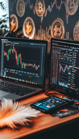 Dynamic workspace with multiple screens showcasing bitcoin, ethereum, and crypto trading tools