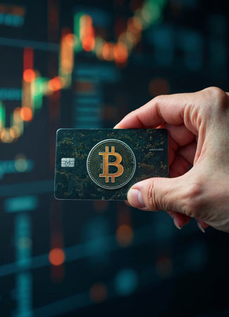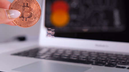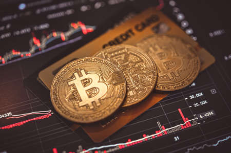 bitcoin cryptocurrency coin with credit bank card concept of online payment