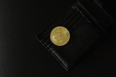 Virtual currency wallet. Bitcoin gold coin. Cryptocurrency concept. Bitcoin cryptocurrency.Worldwide virtual internet money. Bitcoin BTC stock exchange trading background concept. business.