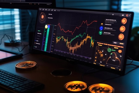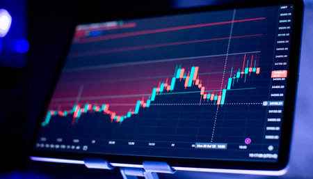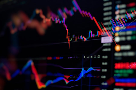 This image showcases a close-up view of a financial trading interface, highlighting colorful charts and stock market data on a dark screen, perfect for finance-related content.