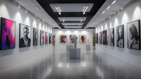 Art gallery with modern paintings on display