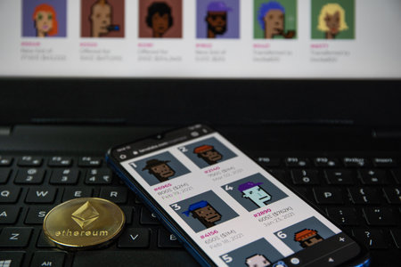 Belgrade, Serbia - Jun 23, 2022: Crypto Punks NFT. Most expensive and desirable NFT on smartphone screen. Trading at Opensea marketplace. Non fungible token on ethereum blockchain
