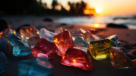 Vibrant sea glass collection showcasing unique textures and colors under sunlight