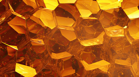 This striking abstract image features a tessellation of geometric shapes in golden tones, exuding luxury and warmth. The crystalline faces catch light, creating a radiant display that could bring a sense of opulence to any space. It's well-suited for upscale decor themes or as a focal piece in a lavish setting.