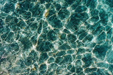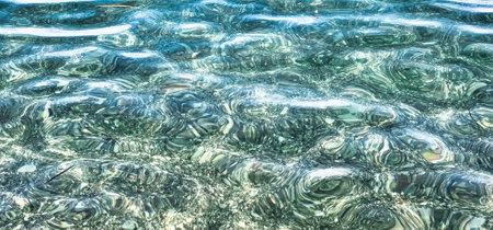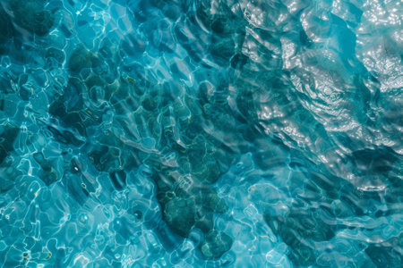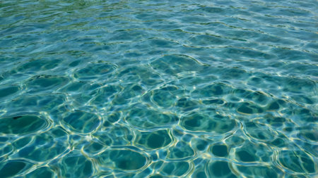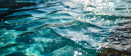 Close-up captures shimmering turquoise water under sunlight, revealing gentle ripples