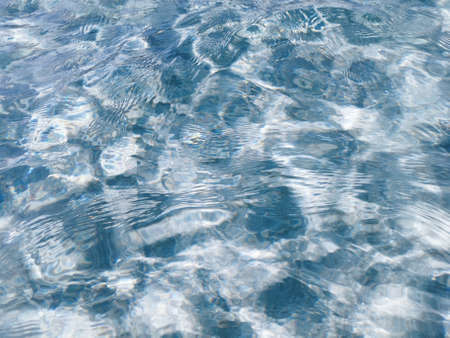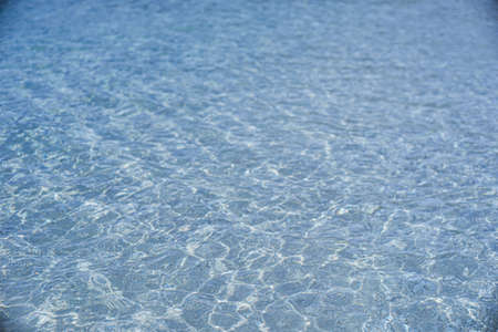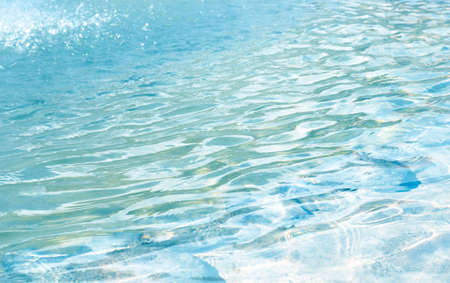 Beautiful clear blue water with waves and rays in the sea. Summer vacation and pool.