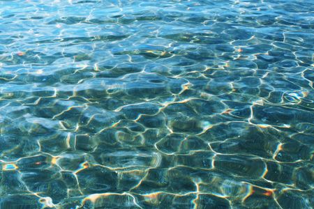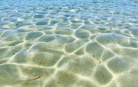 Summer clear water, shore, beach, sunlight, ripple reflection, transparency