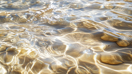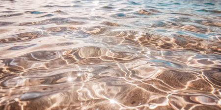 Crystal-clear water dances in the sunlight, creating mesmerizing ripples over soft sand on a tranquil beach. This serene moment invites relaxation and reflection by the shore.