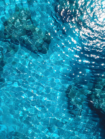 Close-up of clear blue water, highlighting its purity and tranquility, perfect for a refreshing backdrop.