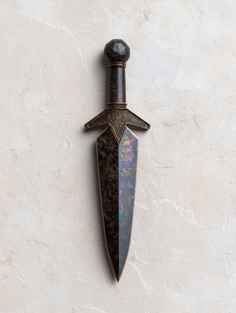 This premium digital render captures a moody, enigmatic atmosphere through expert handling of light contrasts and surface intricacies in a sleek, high-end style. Tailored for fantasy game developers, historical reenactment visuals, jewelry concept artists, and museum exhibit graphics targeting creative professionals and collectors. The refined technical execution emp... AI-generated illustration.