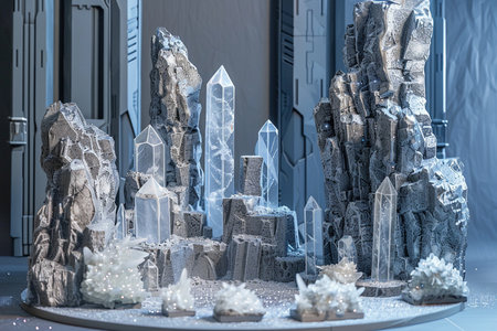 dazzling crystal formations in different shapes and dimensions, forming an enchanting design idea for wallpapers and prints