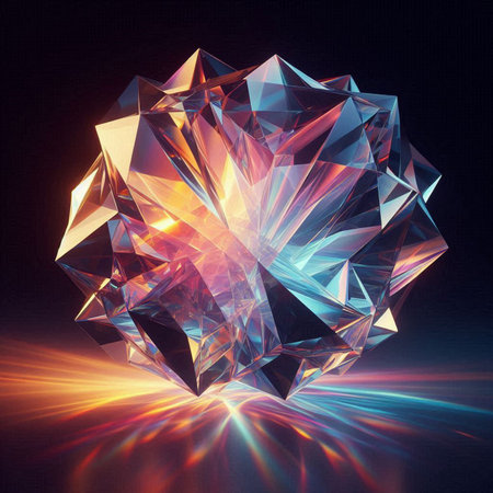Explore the mesmerizing beauty of prismatic glass shapes reflecting vibrant colors and creating a stunning spectrum of light in this abstract composition.