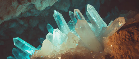 Vibrant Mineral Crystals Embedded in Rough Rock Texture for Geology and Science Themes