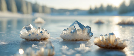 AI Generated. Macro Crystals on Frozen Lake in Natural Light