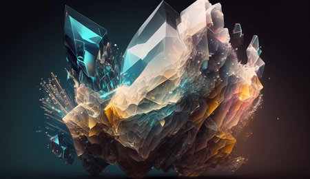 Abstract crystal formations overlay texture showcasing vivid hues and intricate patterns