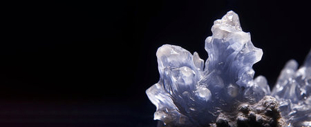 Tachyhydrite is a rare precious natural geological stone eremite on a black background in low key. Fashionable jewelry elegant decoration. AI generated. Header banner mockup with space.