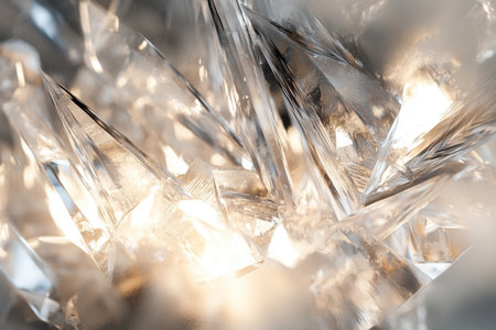 Crystallized patterns showcase geometric shapes in an abstract frozen design