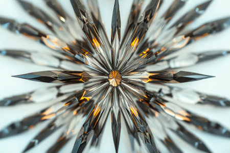 Symmetrical digital artwork capturing ethereal harmony and vibrational flow via meticulous geometric precision and dynamic light refractions. Suited for spiritual wellness branding, meditation space visuals, crystal therapy resources, yoga studio graphics, or holistic product designs. Intricate prismatic detailing fosters serene introspection and energetic resonance ... AI-generated illustration.