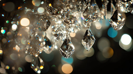 luxurious banner background showcasing elegant crystal chandelier with sparkling lights, perfect for a high-end design concept