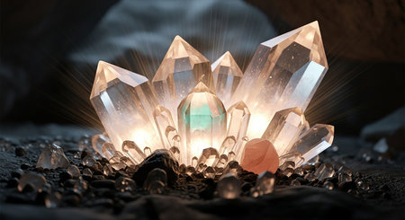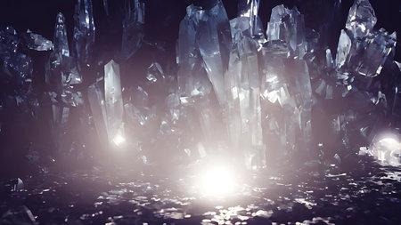 dazzling crystal formations in different shapes and dimensions, forming an enchanting design idea for wallpapers and prints