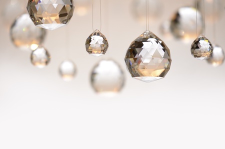 crystal balls hanging on nylon strings, studio shot