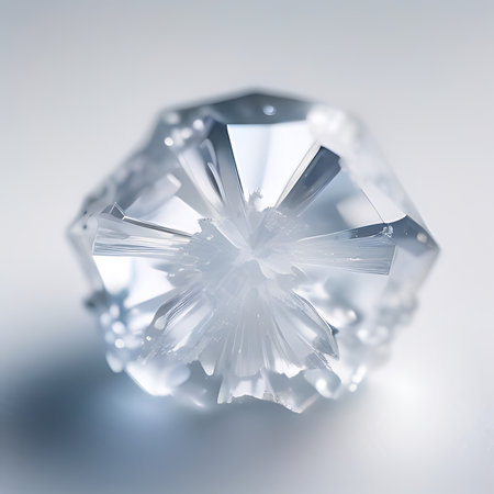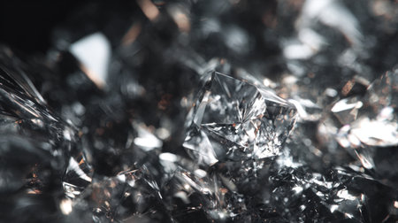 Shimmering crystals reflect light beautifully, creating dazzling display of brilliance and clarity. intricate facets and sharp edges enhance visual appeal, evoking sense of luxury and elegance