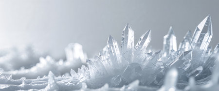 Captivating view of intricate frozen ice crystals, featuring delicate patterns bathed in soft blue-white gradients, embodying the essence of winter minimalism.