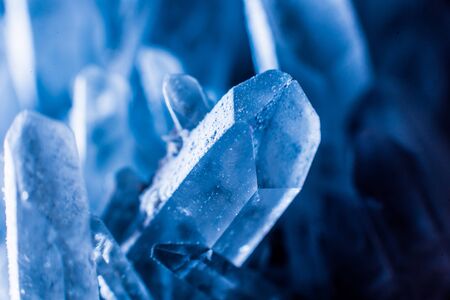 Winter beautiful background of beautiful of blue crystals. Macro shooting.