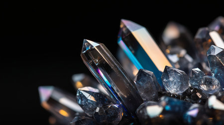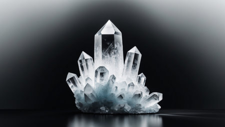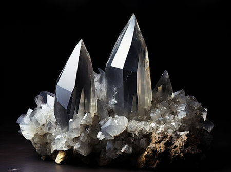 Quartz is a rare precious natural geological stone eremite on a black background in low key. Fashionable jewelry elegant decoration. AI generated.