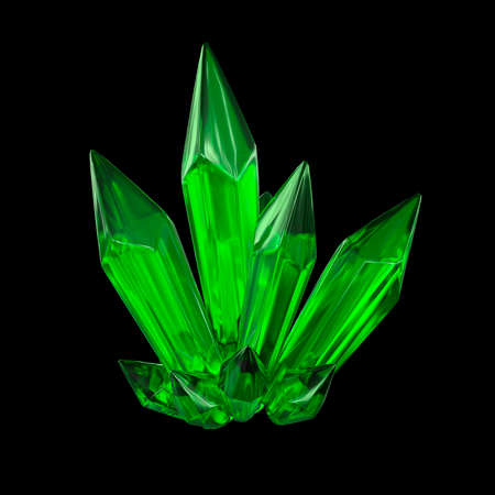 3D render, emerald green crystal on black background, gems, natural nuggets, mysterious accessories