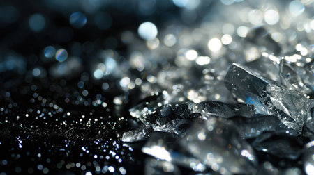 Broken diamonds on black background. Macro shot with shallow depth of field.
