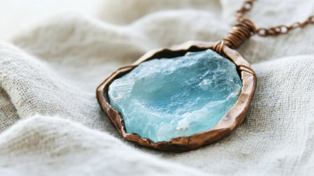 Copper Pendant necklace with Aquamarine Stones. Tree of life on dark background