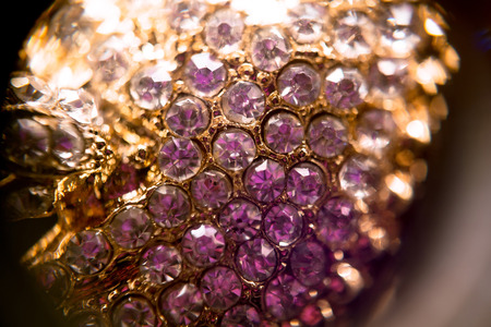 Diamonds in different sizes, golden jewelry extremely close up background.
