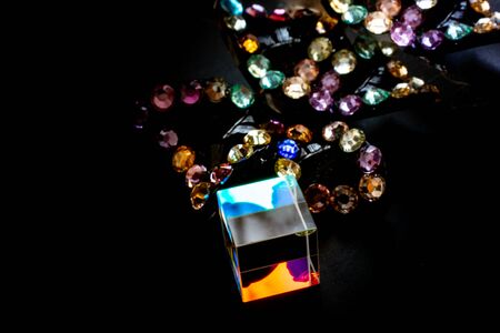Glass prism refracting light in vivid rainbow colors. Refractions of light in a glass prism.