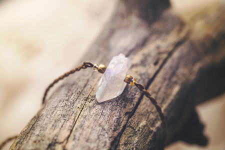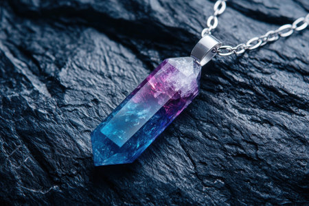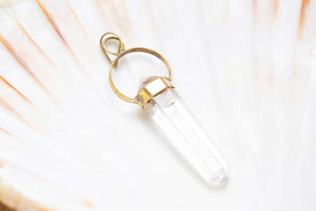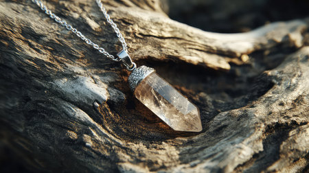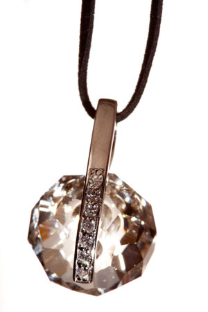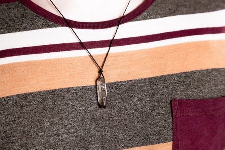 Man with a pendant made of a rhinestone mountain crystal around his neck