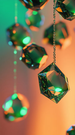 Swinging glass pendants light. Sparkling faceted pendulums. Rhythmic scent of pure crystals.